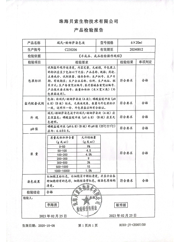貝索 瑞氏-姬姆薩染色液 20mlx6 C230206