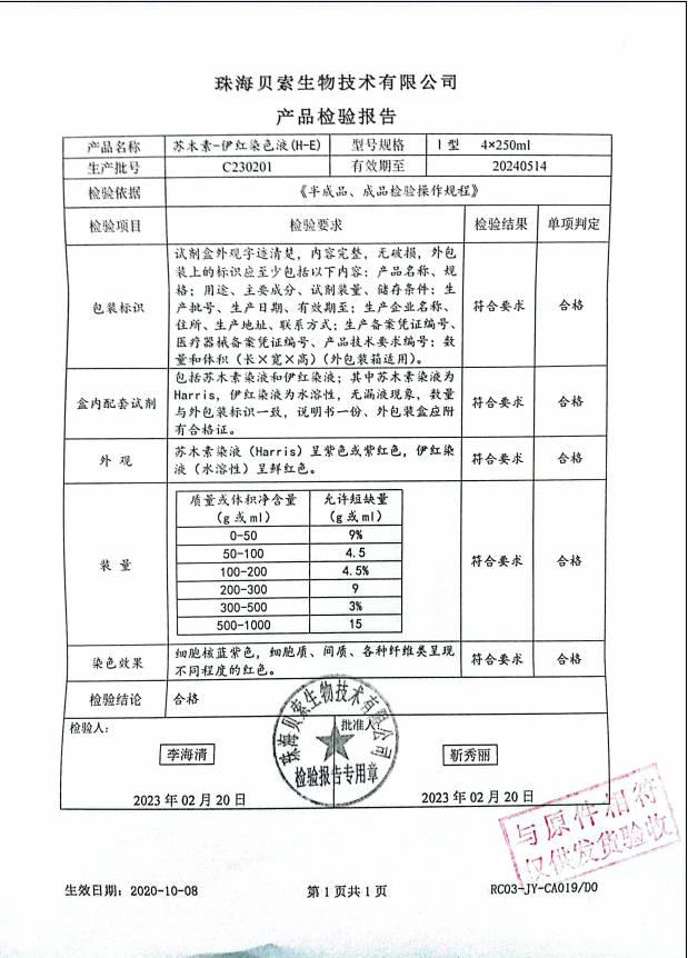 貝索 蘇木素染色液(HE) I型 4x250ml C230201