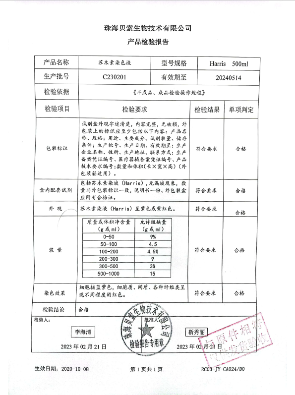 貝索 蘇木素染色液 Harris 500ml BA4097 C230201