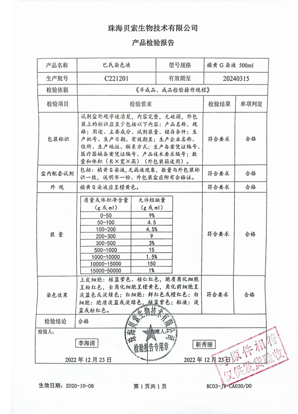 貝索 巴氏染色液 橘黃G 500ml BA4035A C221201