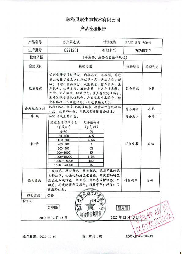 貝索 巴氏染色液 EA-50 500ml BA4033A C221201
