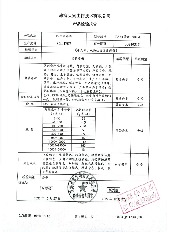 貝索 巴氏染色液 EA-50 500ml BA4033A C221202