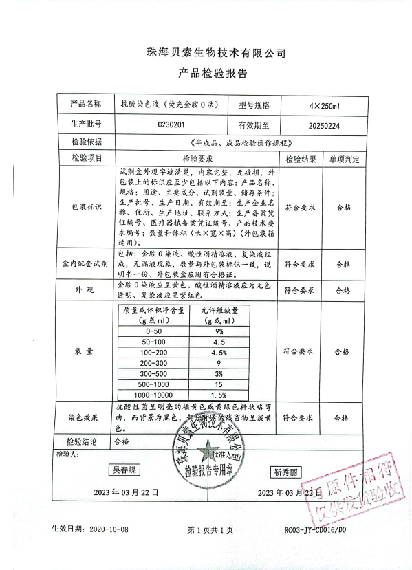 貝索 抗酸染色液 (熒光金胺0法) 4x250ml C230201