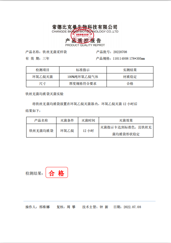 110114008 比克曼生物 鐵絲無菌采樣袋 178x305 (全透明) 100個裝 20220708