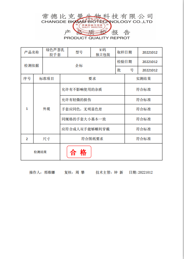 110601019 比克曼生物 綠色蘆薈乳膠手套 M碼 (獨立包裝) 25雙盒 20221012