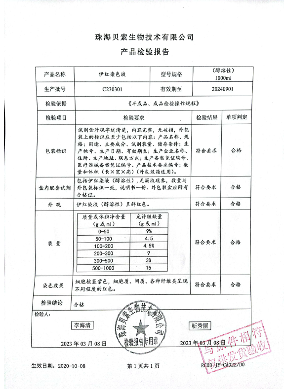 貝索 伊紅染液(醇溶性) 1000ml BA4022 C230301