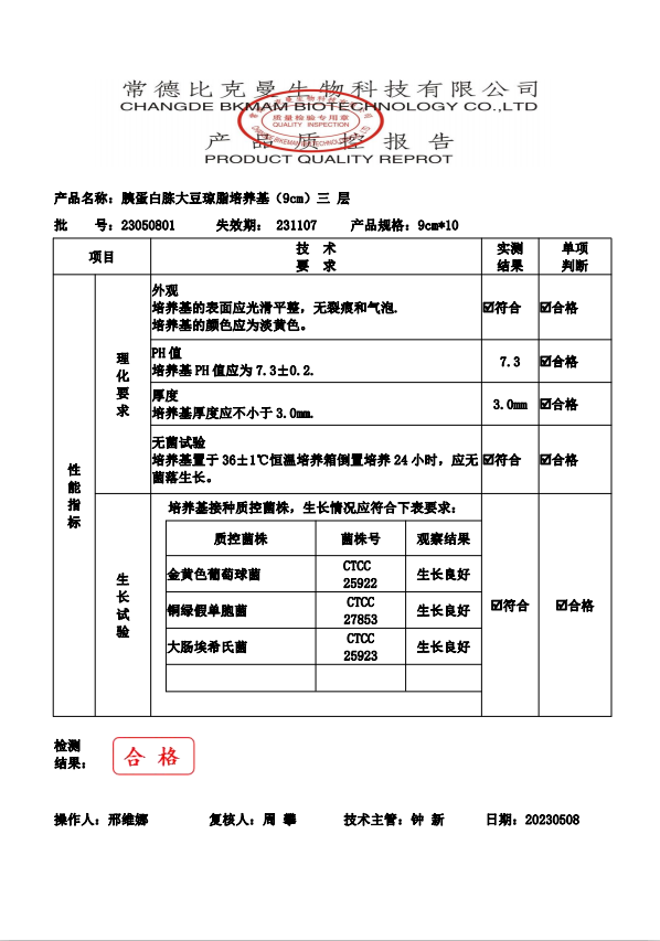110704032 比克曼生物 胰蛋白胨大豆瓊脂(三層包裝) TSA瓊脂平板 9cm 10個袋 23050801