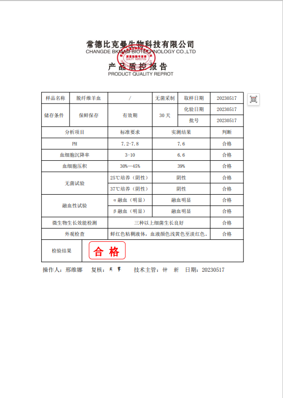 110704020 比克曼生物 脫纖維羊血 100ml瓶 20230517