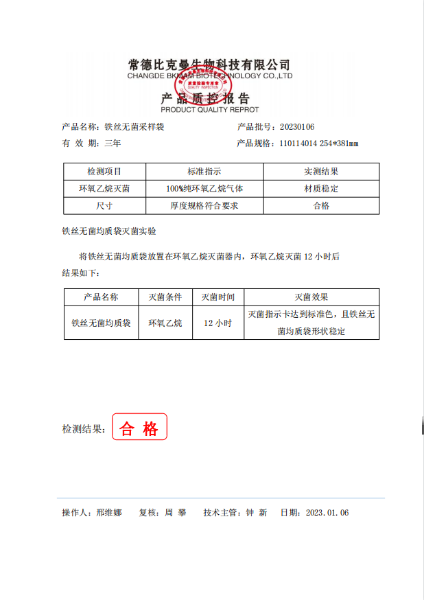 110114014 比克曼生物 鐵絲無(wú)菌采樣袋 254x381(帶書寫區(qū)域) 50個(gè)裝 20230106