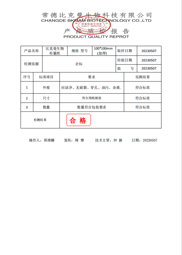 110415005 比克曼生物 稱量紙 100x100mm(加厚) 20230507