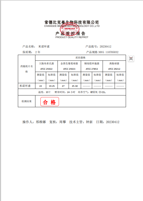 110705032 比克曼生物 米諾環(huán)素 30UG 20片瓶 20230412
