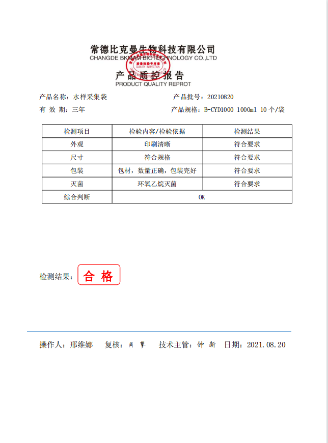 水樣采集袋 1000ml 10個(gè)袋 B-CYD1000 20210820