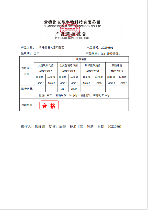110705011 比克曼生物 苯唑西林 新青霉素 1ug 20片瓶 20230301