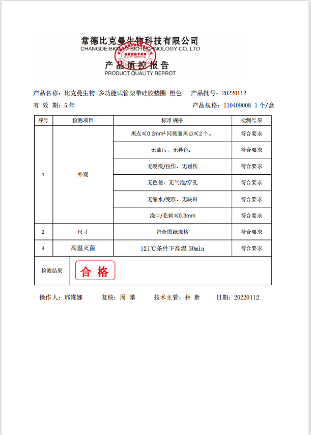 比克曼生物 多功能試管架帶硅膠墊圈 橙色 110409008 20220112