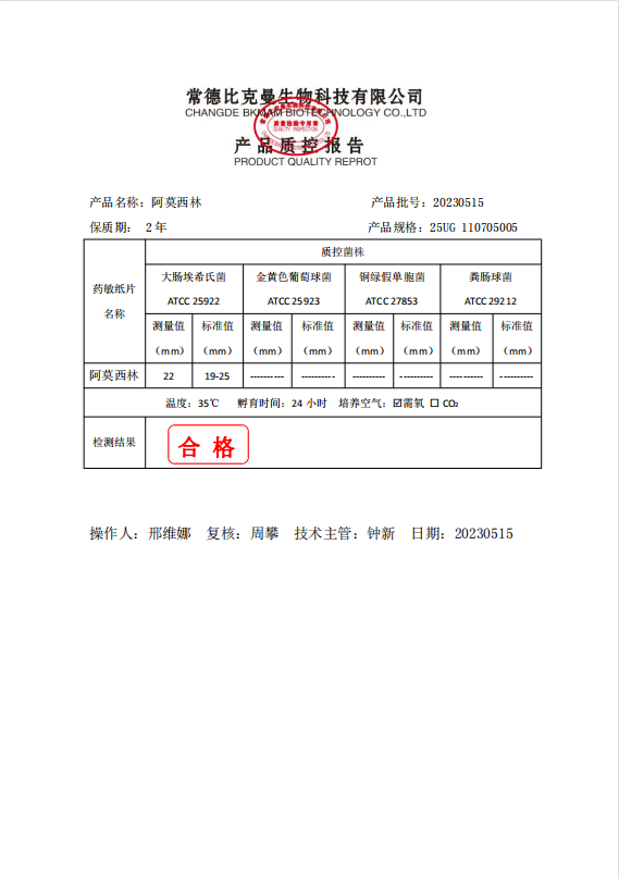 110705005 比克曼生物 阿莫西林 25UG 20片瓶 20230515