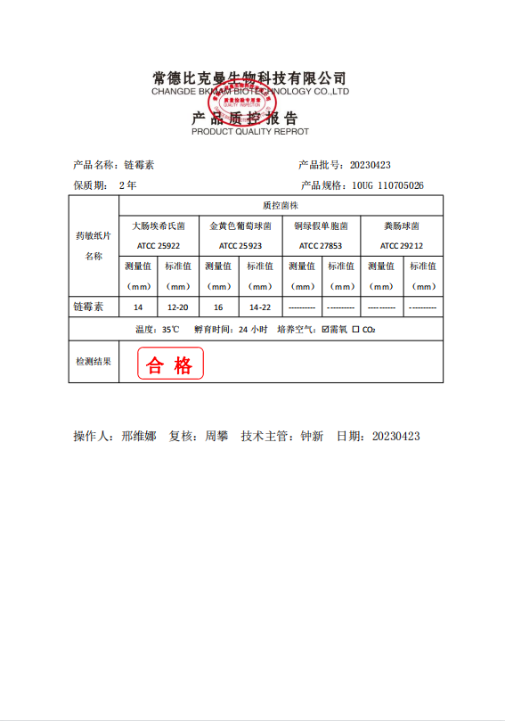 110705026 比克曼生物 鏈霉素 10UG 20片瓶 20230423
