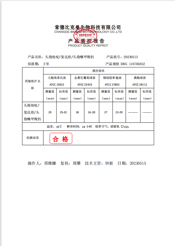 110705052 比克曼生物 頭孢他啶 30UG 20片瓶 20230515