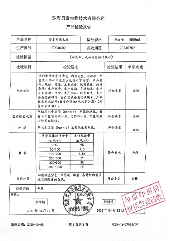 貝索 蘇木素染色液 Harris 1000ml BA4041 C230402