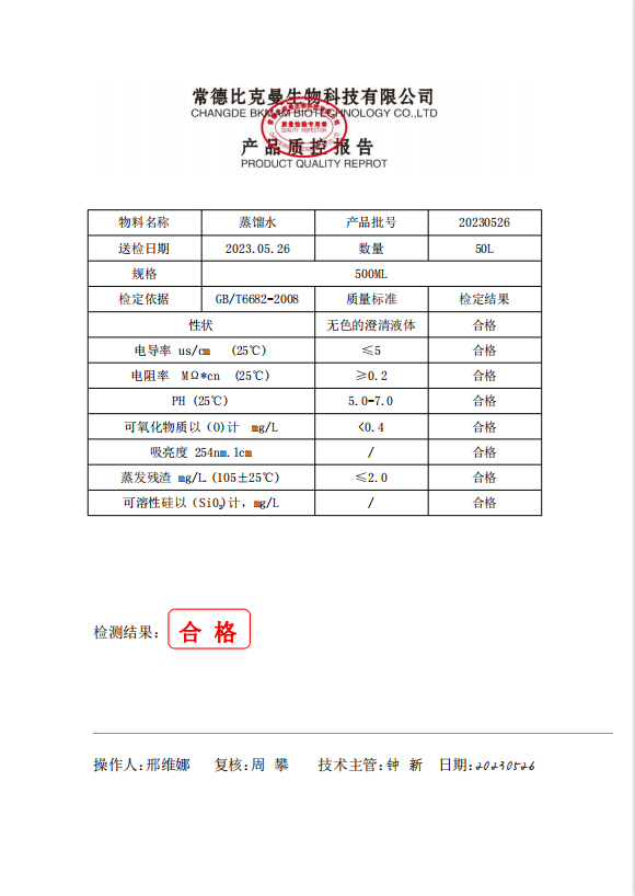 110702069 比克曼生物 蒸餾水 500ml 瓶 20230526