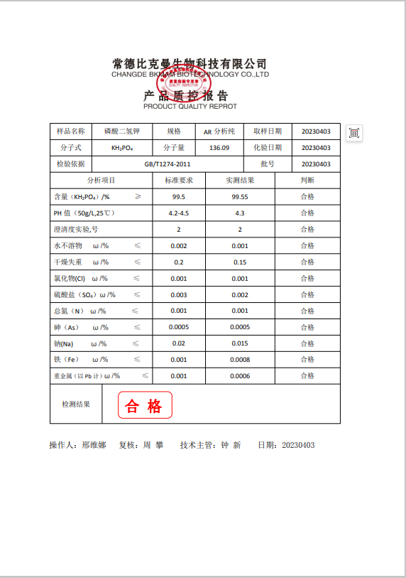 110702019 bkmamlab 磷酸二氫鉀(AR) 500g瓶 20230403