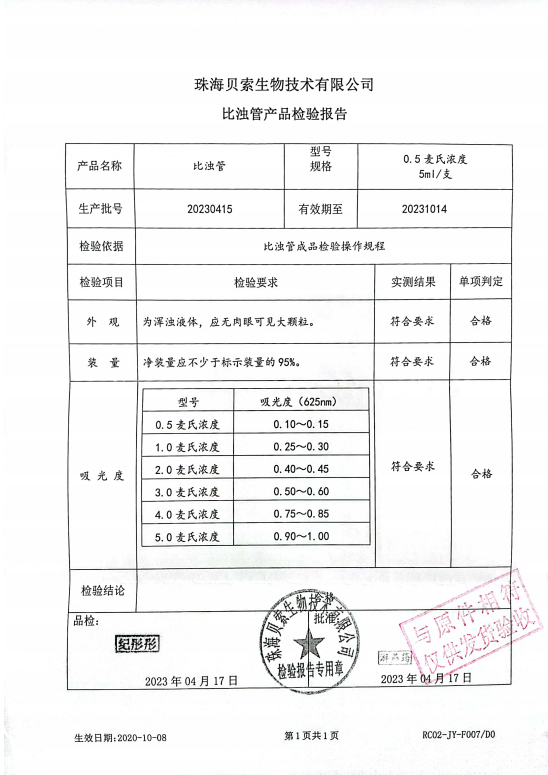 貝索 麥氏比濁管 (0.5濃度5支(5支盒) BC1115A 20230415