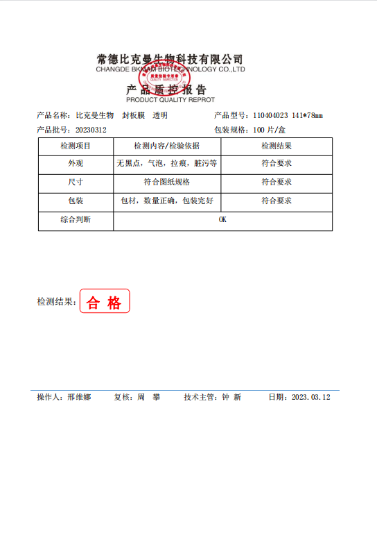 110404023 bkmamlab 熒光定量PCR封板膜 141x78mm 100片盒 20230312