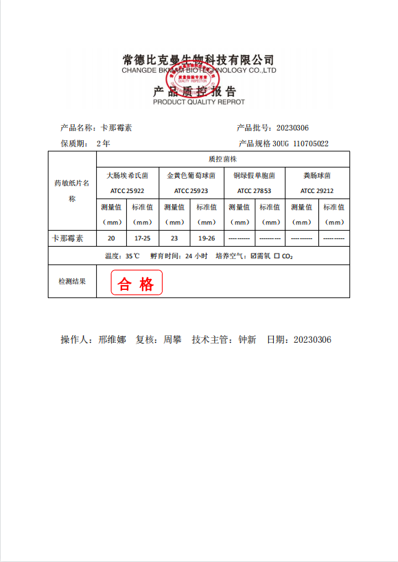 110705022 比克曼生物 卡那霉素 30UG 20片瓶 20230306
