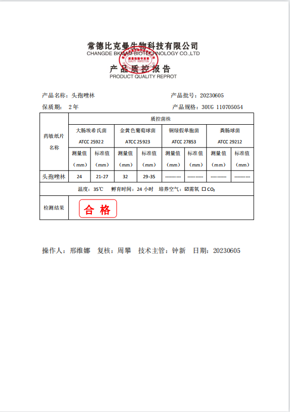 110705054 比克曼生物 頭孢唑林 30UG 20片瓶 20230605