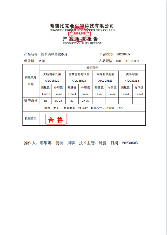 110705007 比克曼生物 氨芐西林 10UG 20片瓶 20230605