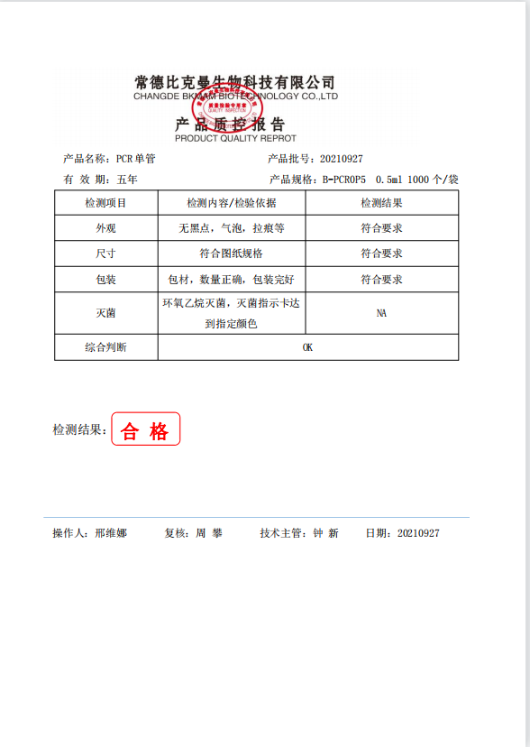 PCR單管 0.5ml PCR單管 1000個袋 B-PCR0P5 20210927