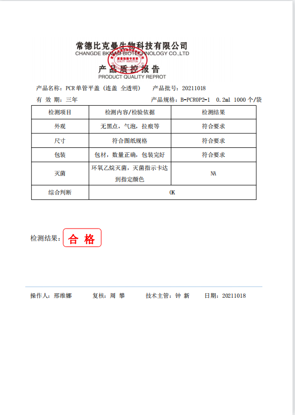 PCR單管 0.2ml PCR單管平蓋 (連蓋 全透明) 1000個袋 B-PCR0P2-1 20211018