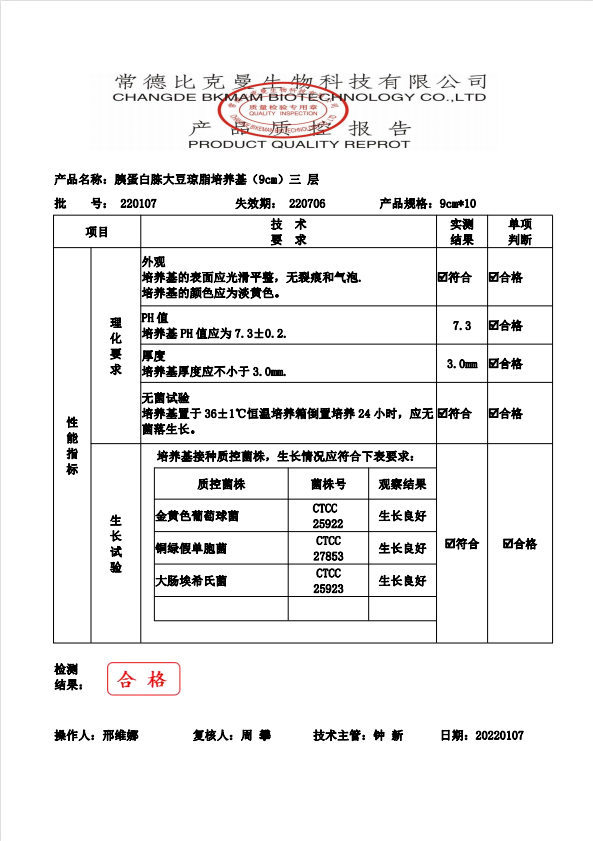 比克曼生物 胰蛋白胨大豆瓊脂(三層包裝) TSA瓊脂平板 9cm 10個(gè)袋 110704022 20220107