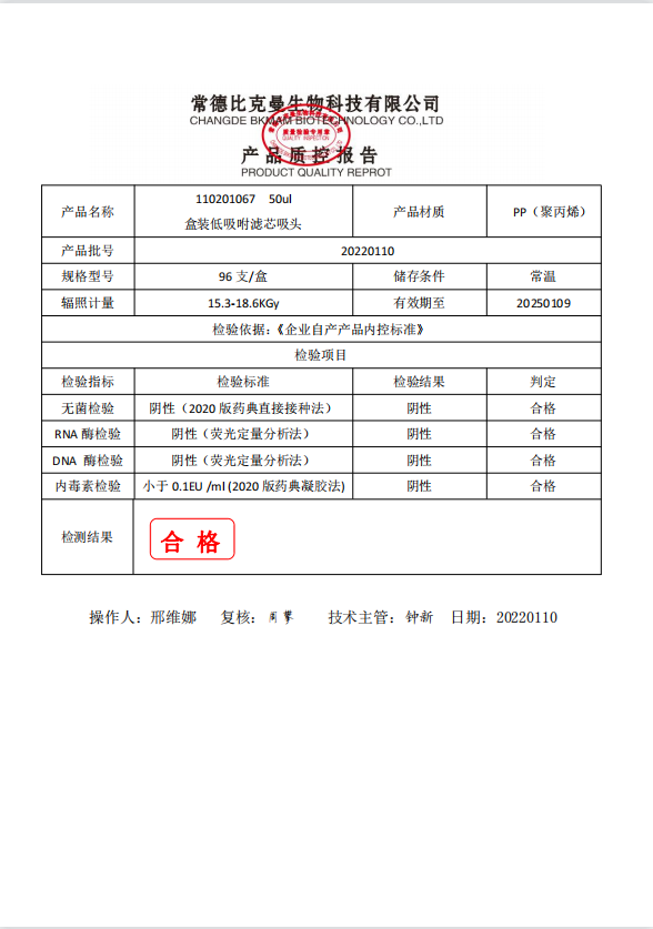 盒裝濾芯吸頭 50ul 盒裝低吸附濾芯吸頭 96支裝 110201067 20220110