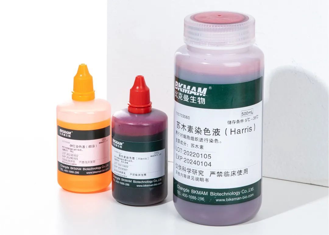 取玻片浸泡于蘇木素染色液中,一般動(dòng)物組織染30s,植物組織染3-5min,蒸餾水水洗,1%鹽酸酒精中脫色,浸泡水洗。
