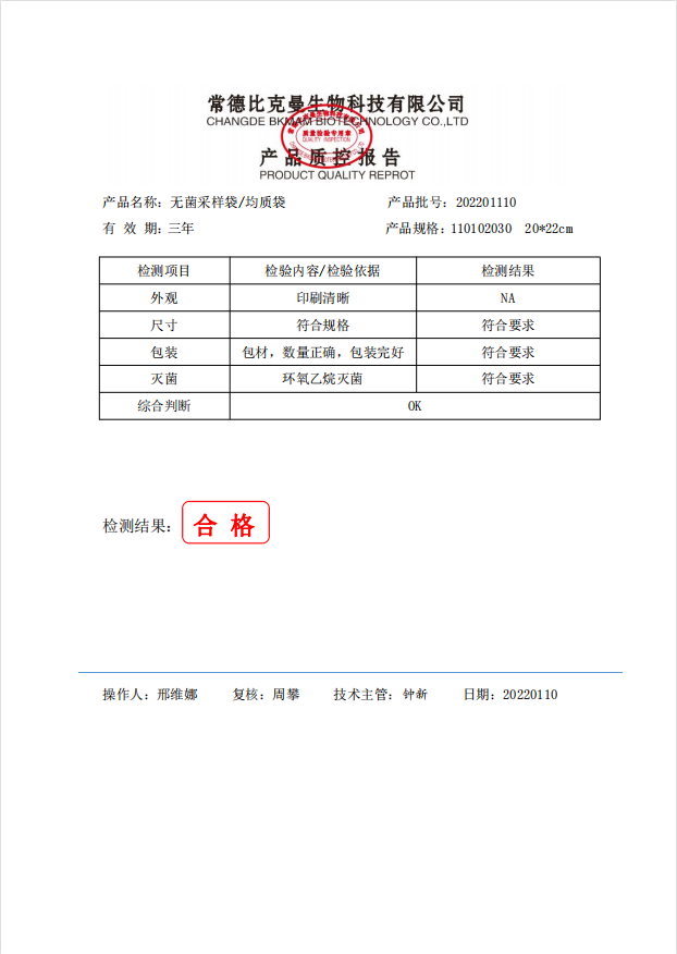 立式無菌采樣袋 20x22(無印刷帶壓條) 100個(gè)裝 110102030 20220110