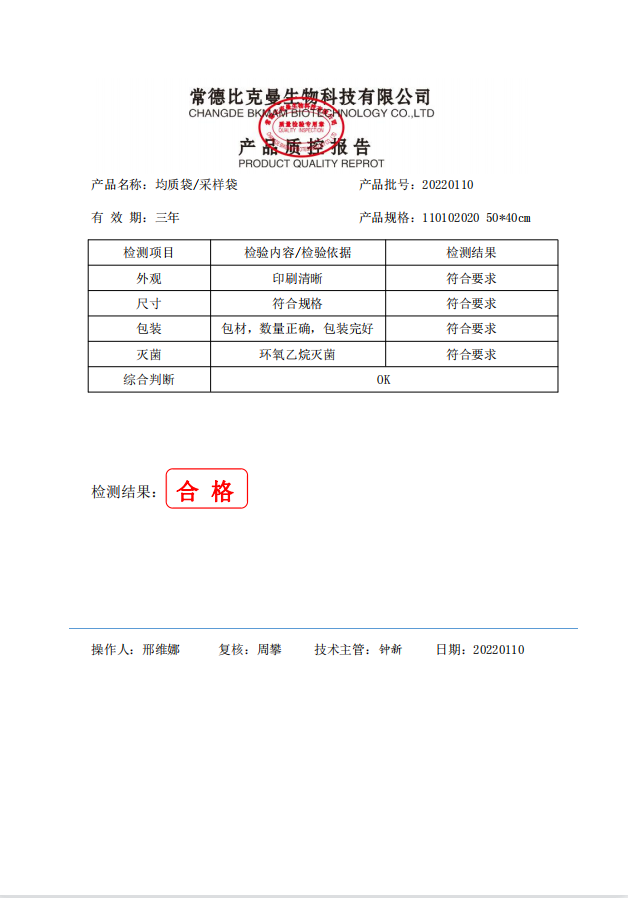 無菌采樣袋 50x40 (有印刷無LOGO帶壓條) 50個(gè)裝 110102020 20220110