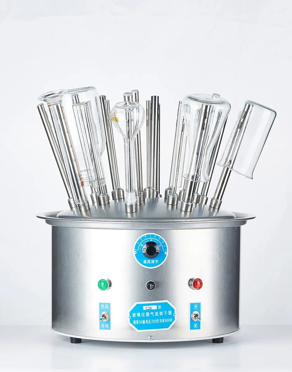 氣流烘干器的用途 01 實(shí)驗(yàn)室玻璃器皿氣流烘干器的主要用途是烘干實(shí)驗(yàn)室中使用的各種玻璃器皿,包括試管、燒杯、量筒等。通過(guò)高效快速的烘干,可以確保實(shí)驗(yàn)結(jié)果的準(zhǔn)確性和可靠性,同時(shí)提高實(shí)驗(yàn)效率。氣流烘干器的優(yōu)點(diǎn)在于其烘干速度快、效率高,能夠節(jié)省時(shí)間和能源。