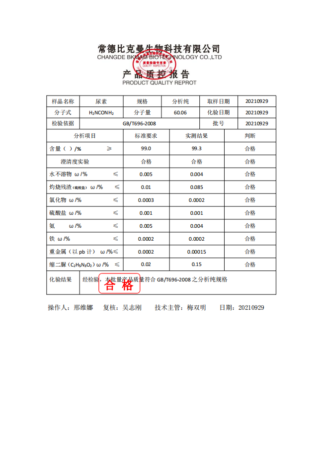 比克曼生物 尿素 AR 分析純 250g瓶 110702036 20210929