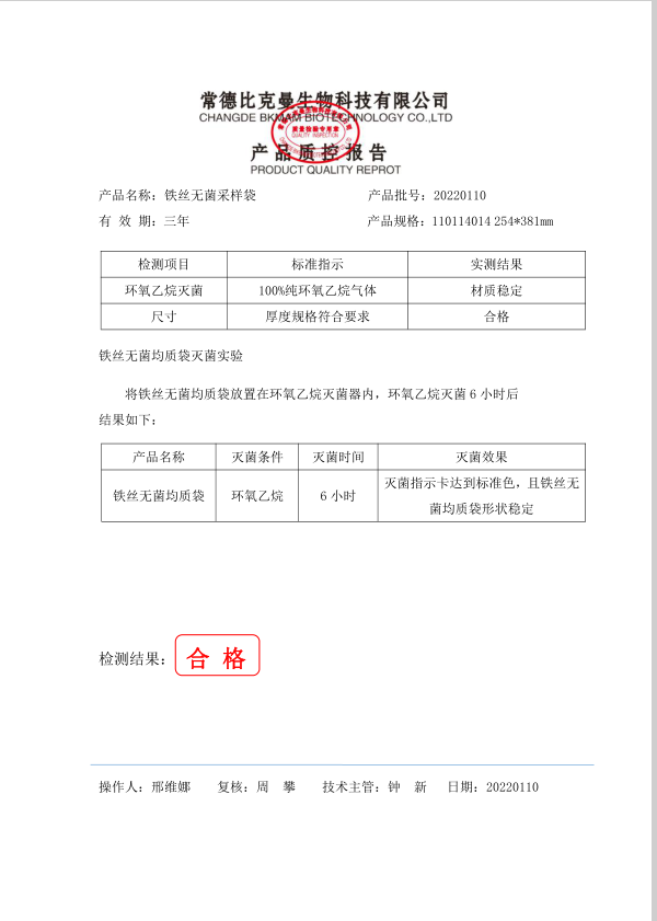 鐵絲無菌采樣袋 254x381(帶書寫區(qū)域) 50個(gè)裝 110114014 20220110