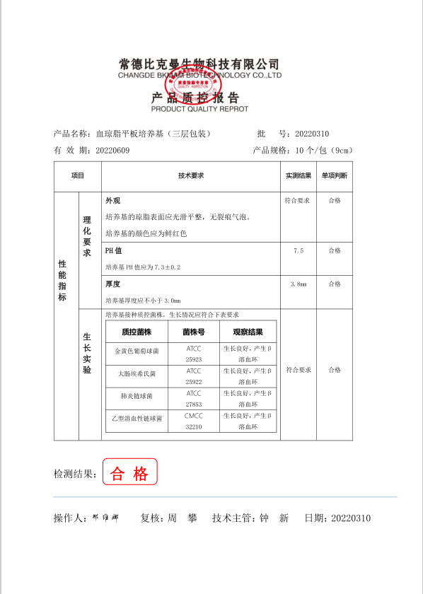 比克曼生物 血瓊脂平板培養(yǎng)基 (三層包裝)9cm 10個袋 110704011 20220310