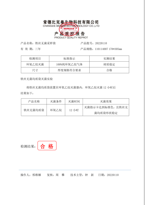 鐵絲無菌采樣袋 178x305 (帶書寫區(qū)域) 100個裝 110114007 20220110