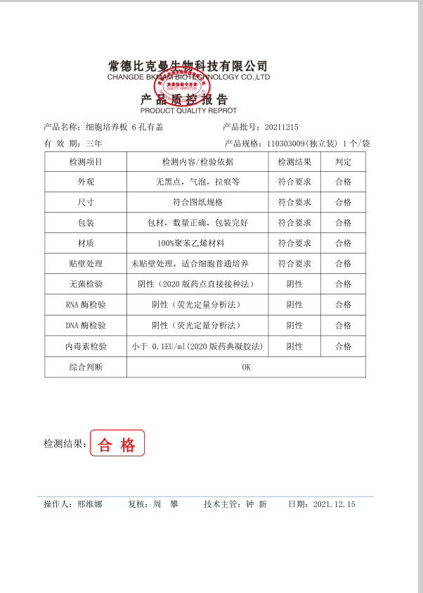 比克曼生物 6孔細胞培養(yǎng)板 有蓋 (獨立裝) 1個袋 110303009 20211215