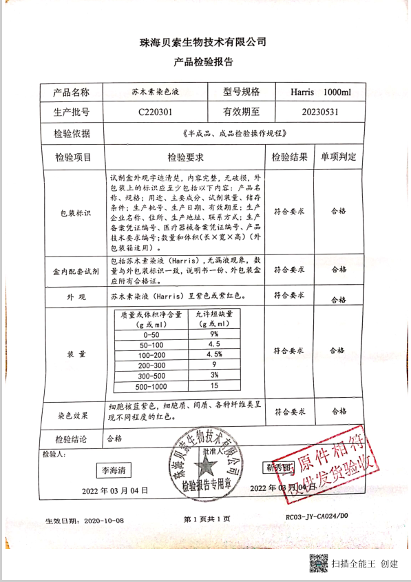 貝索 蘇木素染色液 Harris 1000ml BA4041 C220301