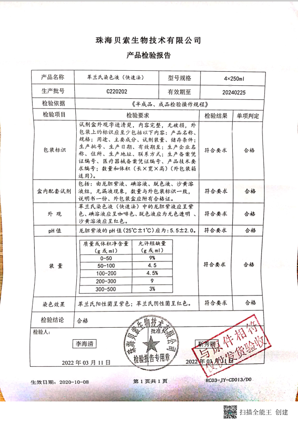 貝索 革蘭氏染色液(快速法) 250ml4盒 BA4012 C220202