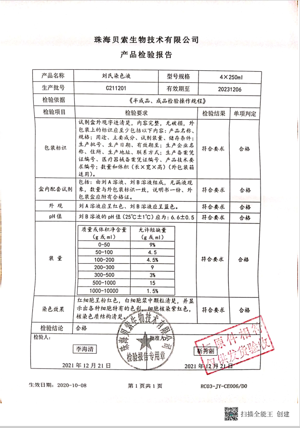 貝索 劉氏染色液 4x250ml BA4000 C211201