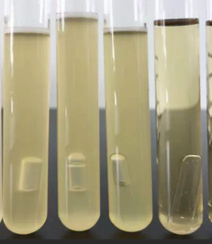 渾濁:部分微生物的代謝、繁殖會使透明的生化管或發(fā)酵管變渾濁,可以以此來判斷微生物種類。