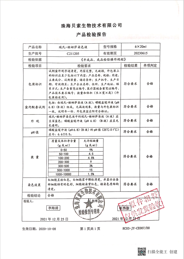 貝索 瑞氏-姬姆薩染色液 20mlx6 C211205