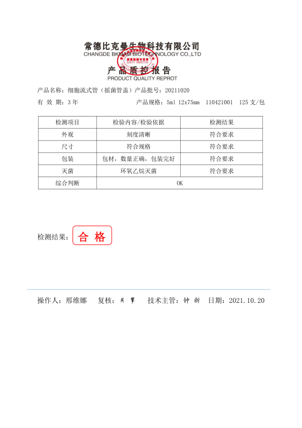 比克曼生物 細(xì)胞流式管(搖菌管蓋) 5ml 12x75mm 125支袋 110421001 20211020