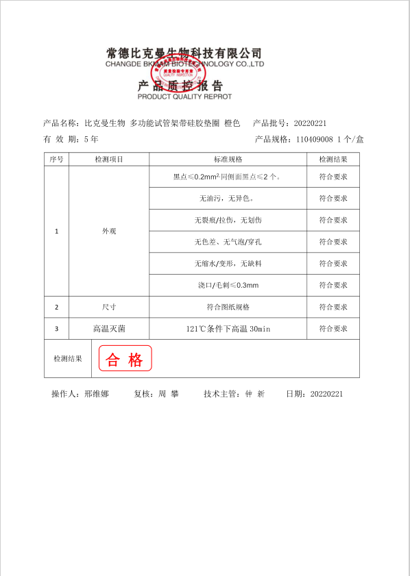 比克曼生物 多功能試管架帶硅膠墊圈 橙色 110409008 20220221