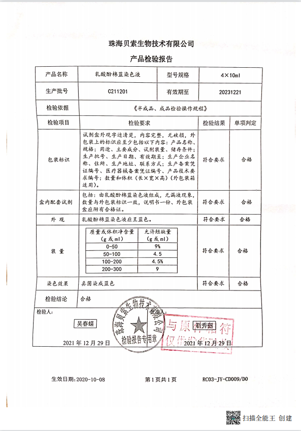 貝索 乳酸酚棉藍(lán)染色液 4x10ml BA4124 C211201